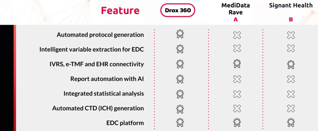 - DROX 360 automates the identification and structuring of variables, accelerating the creation of Electronic Data Capture (EDC).