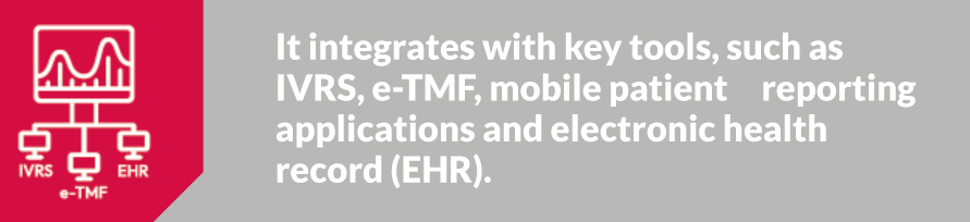 - Increased connectivity and integration with IVRS, e-TMF, EHR and mobile applications.